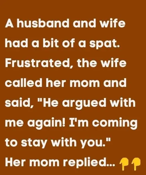 A husband and wife had a bit of a spat.Frustrated, the wife called her mom and said, “He argued with…