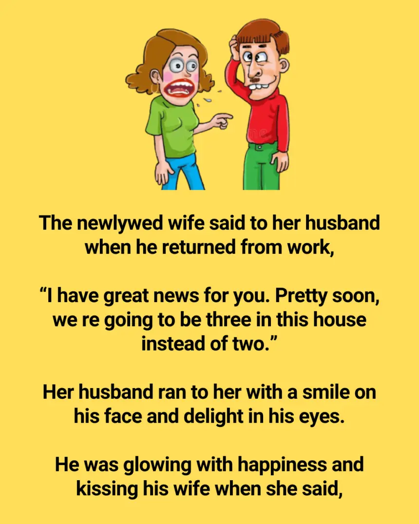 The newlywed wife said to her husband when he returned from work,“I have great news for you. Pretty soon, we…