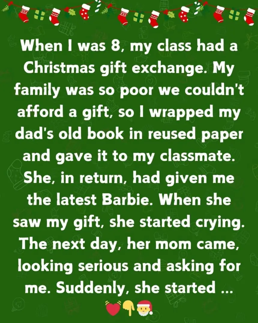 The next day, her mom came to school, looking serious and asking for me. Suddenly, she started smiling when she saw me and her expression softened. She handed me a bag filled with gifts—the Barbie’s matching car, a Ken doll, and brand-new holiday clothes. I was overwhelmed.