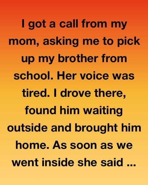 I got a call from my mom, asking me to pick up my brother from school. Her voice was tired. I drove there, found him waiting outside and brought him home. As soon as we went inside she said, “I need to lie down for a bit. Just watch your brother for a while.”