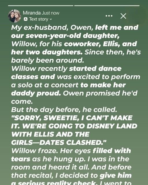 “He doesn’t care about me! He never did!” My daughter was heartbroken when my ex-husband chose a Disney trip with his stepdaughters over her dance recitaI. So, I decided to give him a reality check via social media, resulting in a viral post that sent shockwaves through our community.