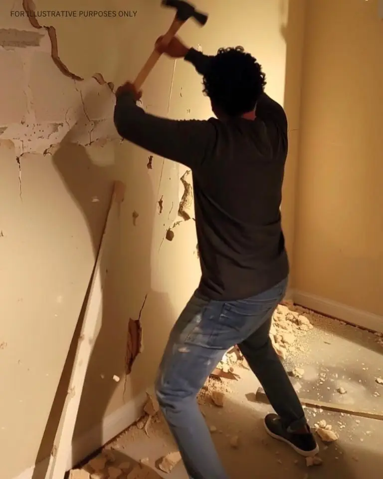 I stood frozen as the two men dismantled the wall. My carefully painted surface and my family photos hanging nearby crumbled into a pile of drywall and dust.