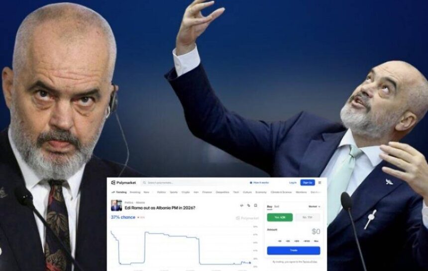 Qeveria shqiptare tashmë është bërë subjekt bastesh në tregjet globale. Në një nga platformat më të mëdha të parashikimeve, Polymarket, është hapur një pyetje që lidhet drejtpërdrejt me politikën shqiptare: “A do të largohet Edi Rama si kryeministër në vitin 2026?”