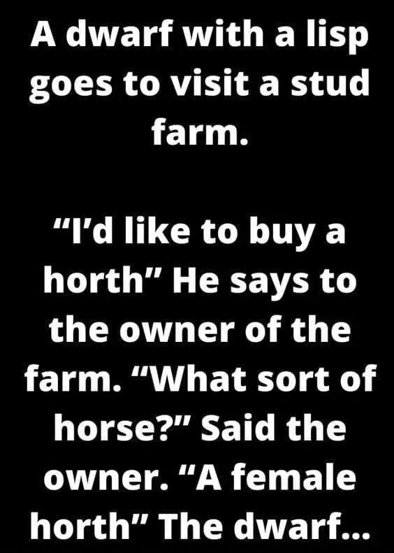 With this the owner picks the dwarf up by the scruff of his neck and shoves his head deep in just under the horses tail, right into the lady parts.