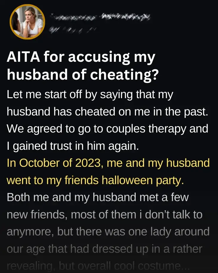 Let me start off by saying that my husband has cheated on me in the past. We agreed to go to couples therapy and I gained trust in him again.