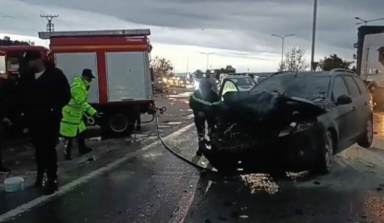 Sipas të dhënave paraprake, një automjet tip Ford ka goditur fuqishëm nga pas një BMW X5. Nga forca e madhe e përplasjes, mjeti Ford ka pësuar dëmtime të rënda dhe ka marrë flakë pothuajse në çast.