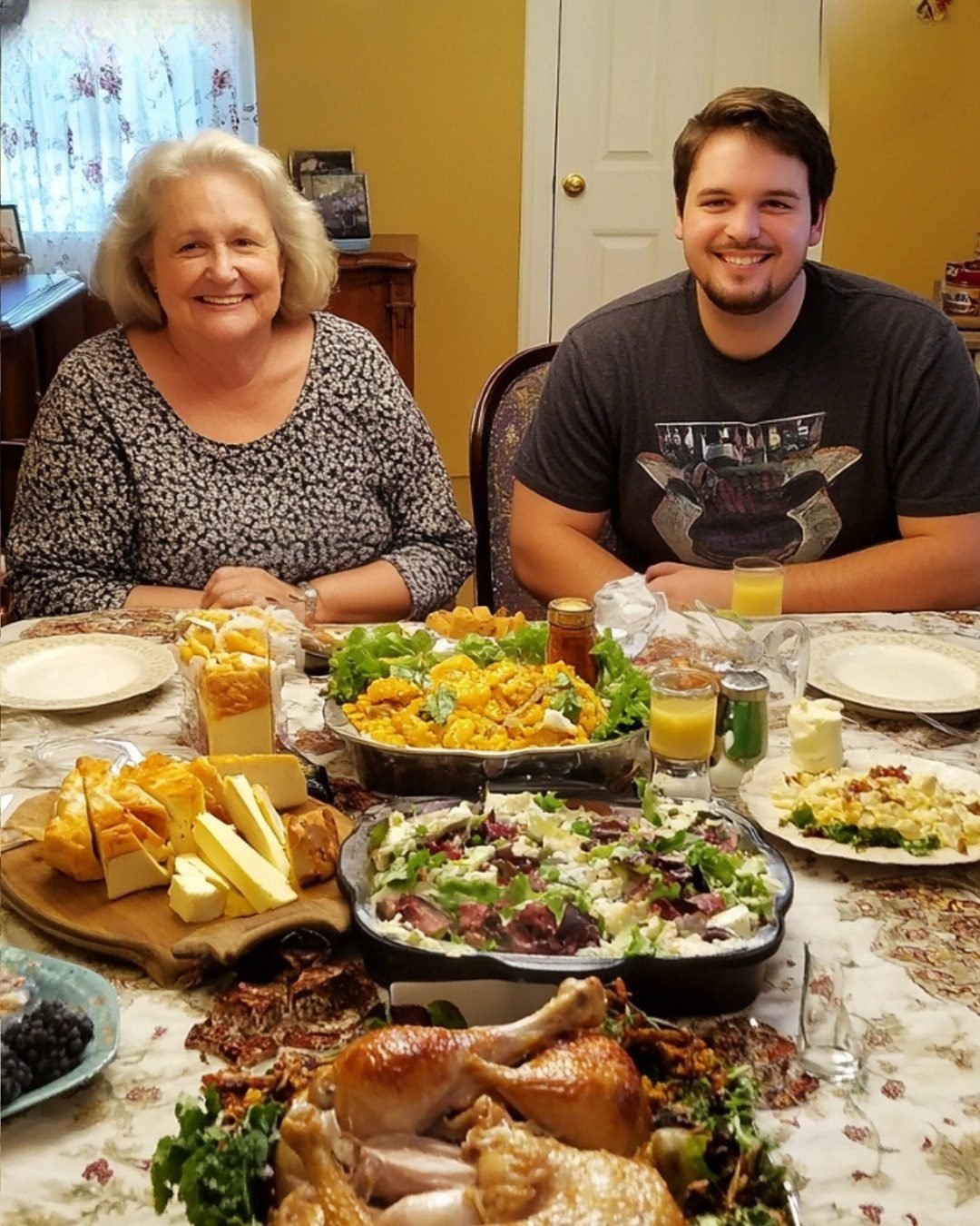 It took some convincing but Alex was finally on board. I cooked for two days straight. Roast chicken glazed in honey and thyme, salads with candied pecans and goat cheese, and a cake I’d spent hours on that somehow leaned slightly to the right but still tasted like heaven.