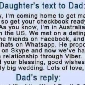 Daughter Texted Her Dad: “I’m Getting Married, Get Your Checkbook Ready!” His Hilarious Sarcastic Response About Her $50,000 Wedding Budget Is Now Going Viral