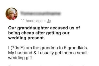 Our Granddaughter Accused Us of Being Cheap after Getting Our Wedding Present