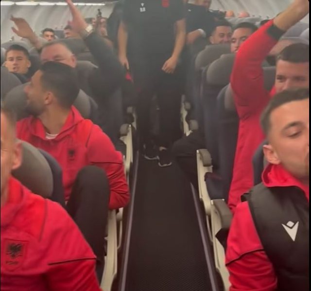 Festa e kombëtares në avion pas fitores me Serbinë, kuqezinjtë i këndojnë Adem Jasharit