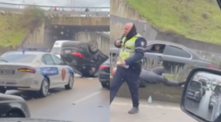Makina kthehet përmbys te Unaza e Madhe, një person dergjet në rrugë, ambulanca nuk duket gjëkundi