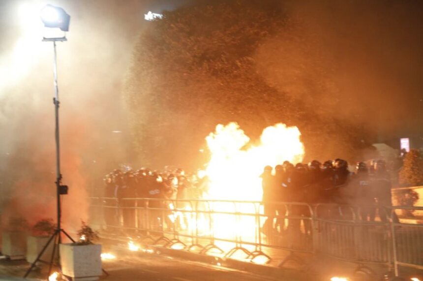 Tensione në komisariatin nr.1 në Tiranë, deputetët e opozitës shkojnë pas protestuesëve të arrestuar! Përplasje fizike me policinë (Video)
