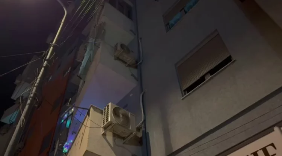 Bie nga kati i tretë i pallatit e moshuara, mbetet mes murit dhe kondicionerit