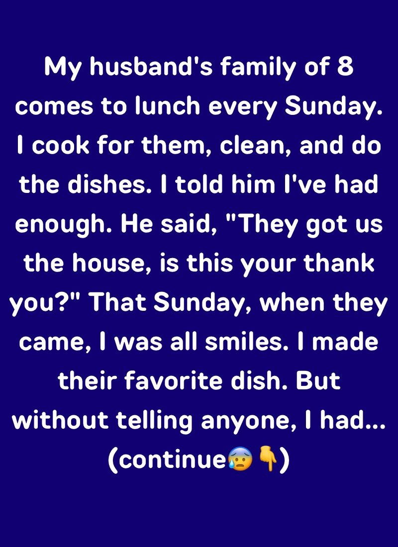 I Refuse to Cook Lunch for My Husband’s Family Every Sunday, So I Set the Perfect Trap