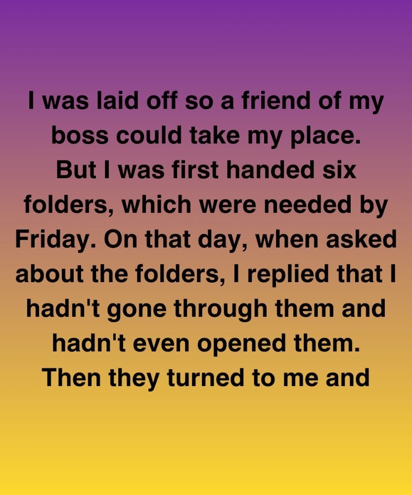 I Was Laid Off So A Friend Of My Boss Could Take My Place, But I Held The Final Card