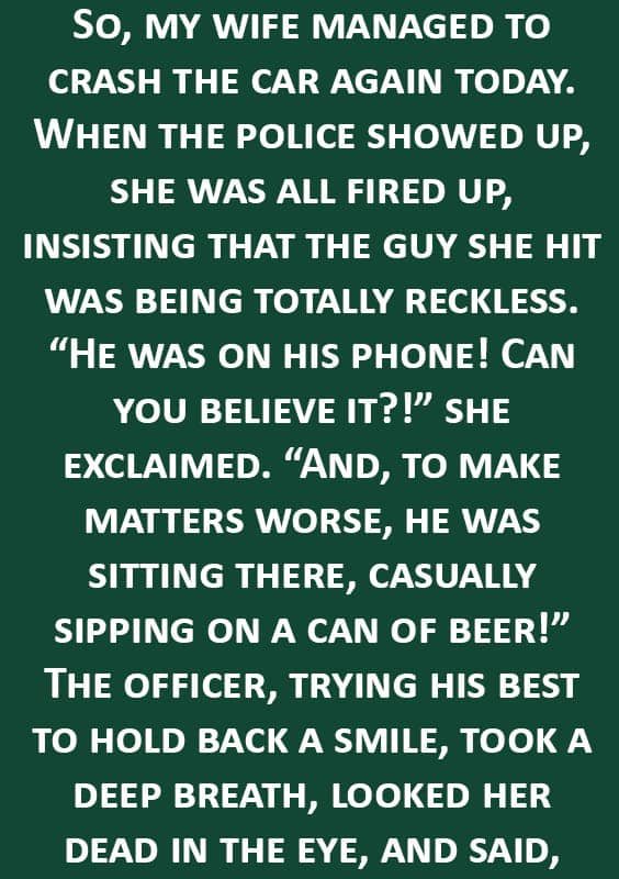 Wife Crashes Car Again — You Won’t Believe What the Cops Said