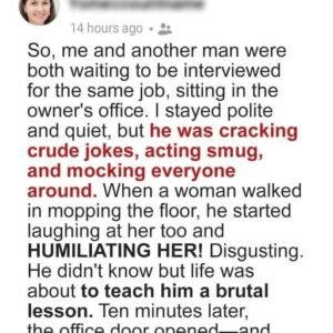 A Job Candidate Yelled at a Woman with a Mop — 10 Minutes Later, He Got a Lesson He’ll Never Forget
