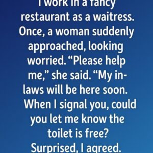 I work in a fancy restaurant as a waitress. Once, a woman suddenly approached, looking worried. “Please help me,” she said. “My in-laws will be here soon….