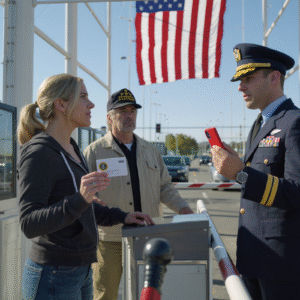 The guard asked for ID. My dad handed over his retired card. “She’s with me,” he said, gesturing toward me. “Just a civilian.” I handed the guard…