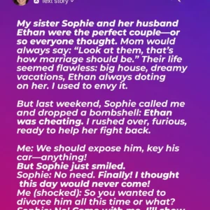 When my sister Sophie discovered her husband’s affair, I was ready to help her plot the ultimate revenge. But instead of anger, she shocked me with a…