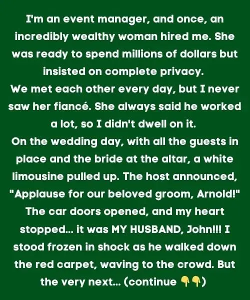 One day, I attended the wedding of a highly affluent woman, acting as the event manager. I had been closely involved with the wedding planning from the beginning. But when I saw the groom for the first time, I was stunned—standing there was John!