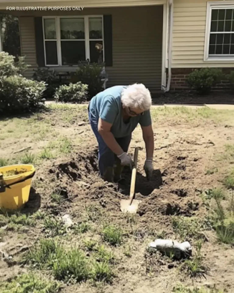 Today, she wasn’t her usual composed self. She was digging. Hard. Her frail arms jabbed a spade into the dirt, sweat staining her blouse. It didn’t look right.