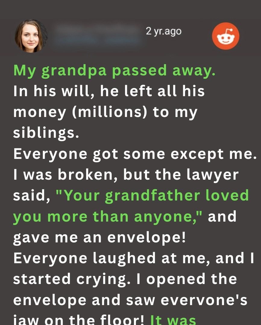I fought back tears while holding the envelope in my trembling hands. I unsealed it, and within… lay a letter. Not from the attorney. Not from the estate administrator. From Grandpa. Using his recognizable handwriting, he had written: