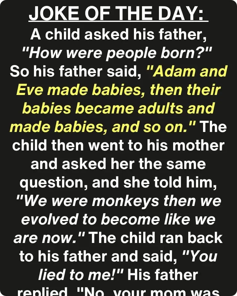 “Adam and Eve made babies, then their babies became adults and made babies, and so on.”