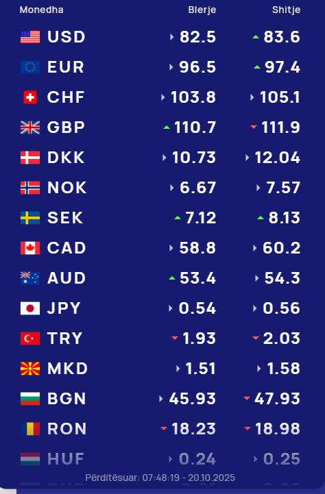 Ndërsa paundi britanik do blihet me 110.7 lekë dhe do shitet me 111.9 lekë.