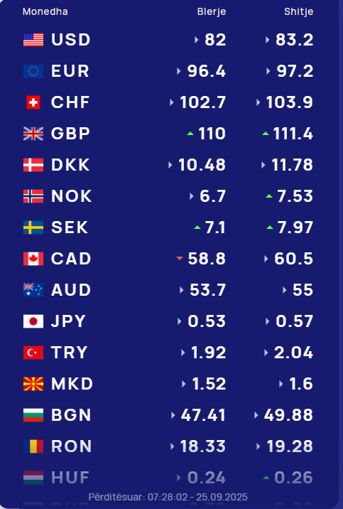 Ndërsa paundi britanik do blihet me 110 lekë dhe do shitet me 111.4 lekë.