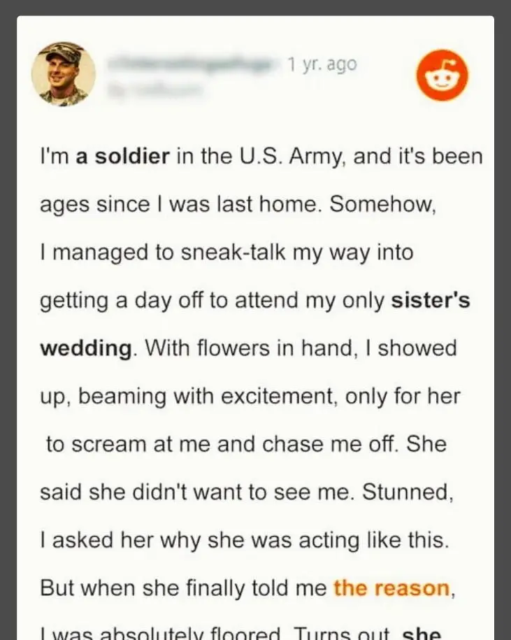 Military Man Is Kicked Out of His Sister’s Wedding When He Arrives to Surprise Her – Story of the Day
