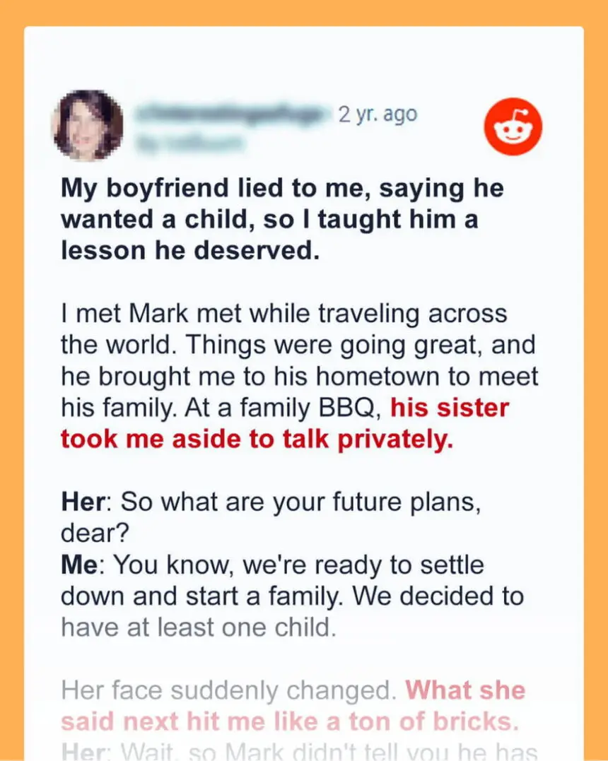 He was pretty open about not wanting kids,” she continued, unaware of the ground shifting beneath my feet. The revelation was a betrayal so profound that it left me reeling.