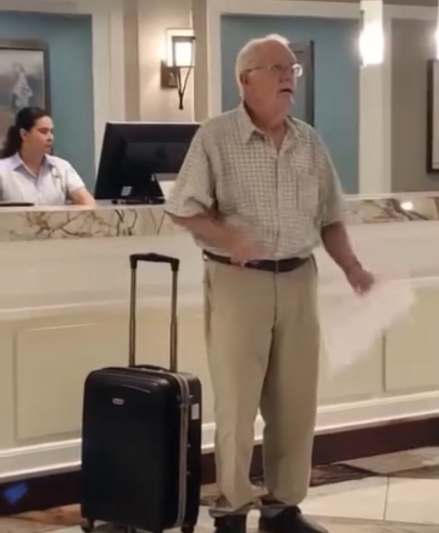 Behind him, the front‑desk staff waited politely, monitoring the senior’s distress. Meanwhile, the rest of the family had already departed—off to the airport, confident they had “taken care of everything.”