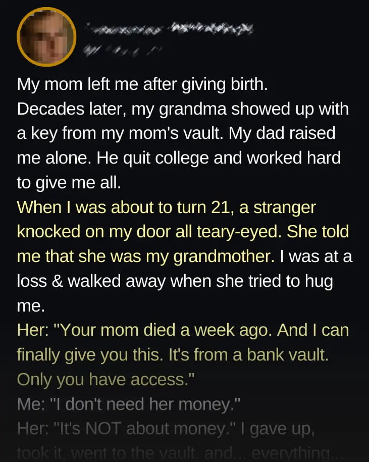 In that vault, I found more than money. There were pictures of me as a kid, clothes I used to wear, and a letter from my mom where she explained why she left.