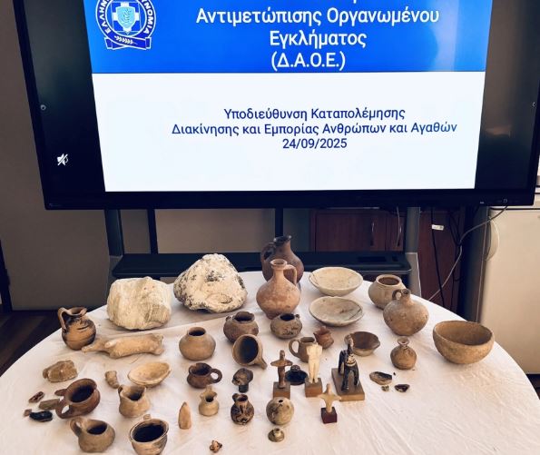 Policia gjeti dhjetëra objekte që bien nën ligjin e antikiteteve, duke përfshirë vazo të lashta, libra dhe piktura, të cilat sipas autoriteteve janë pjesë e trashëgimisë kulturore të Cikladeve. Megjithatë, gjetja që shkaktoi tronditje ishte një fetus njerëzor, i vendosur në një shishe qelqi.