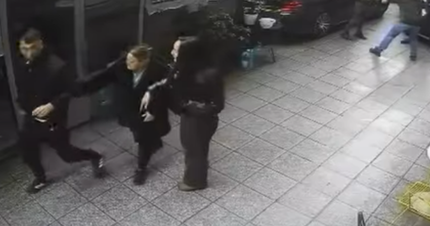 Në një video të shpërndarë në rrjetet sociale, polici shfaqet me pistoletë në dor duke kërcënuar.