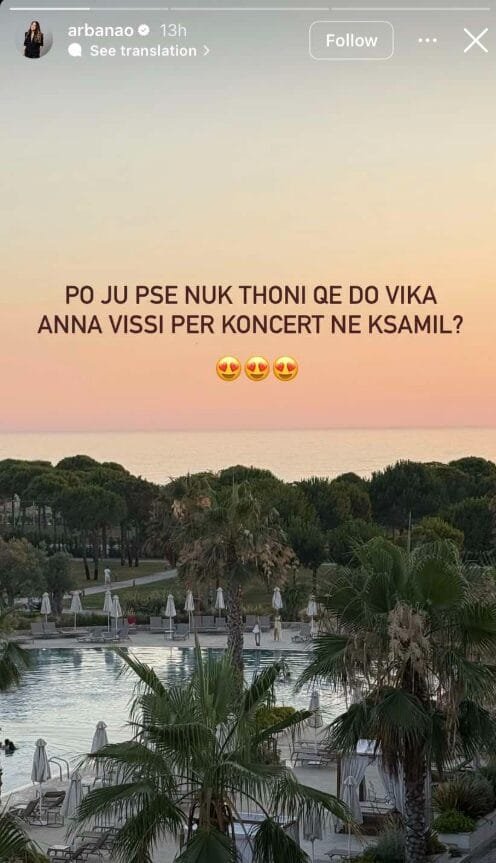 Në një postim Arbana ka bërë një pyetje që ngjalli reagime “Po ju pse nuk thoni që do vijë Anna Vissi për koncert në Ksamil?”