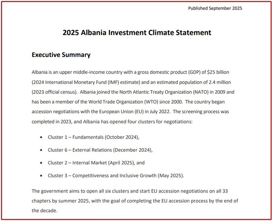 Qeveria e kryeministrit Rama vijon të marrë shuplaka nga SHBA. Departamenti Amerikan i Shtetit ka publikuar raportin e vitit 2025 për klimën e investimeve dhe korrupsioni me pastrimin e parave shihen si problematikat më të mëdha.