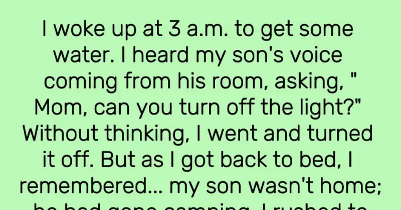 I awoke at 3 a.m. to obtain water. My son’s voice came from his room, asking, “Mom, can you turn off the light?” Without thinking, I turned it off.