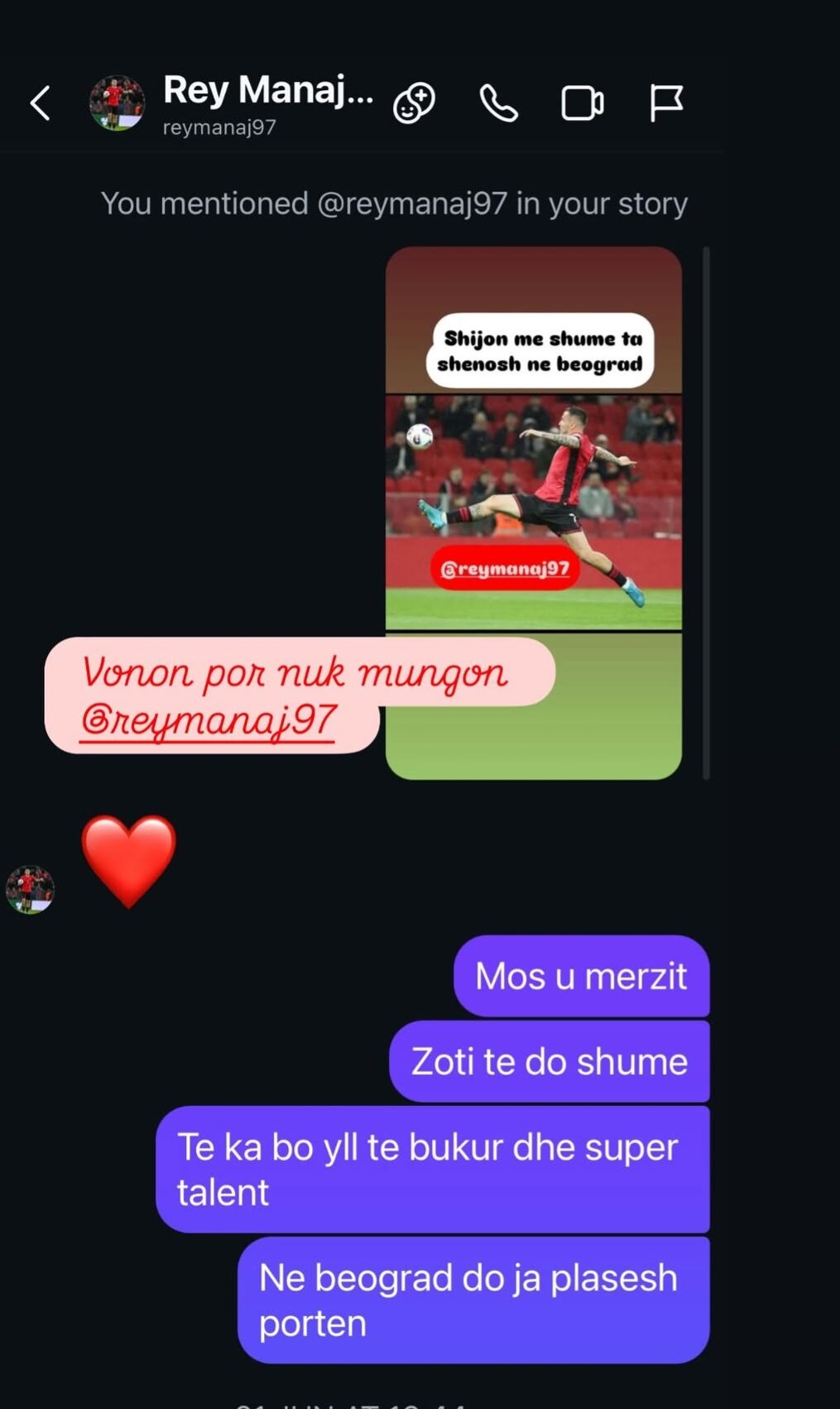 Në qershor, pas penalltisë së humbur kundër Serbisë, Shakohoxha i kishte shkruar sulmuesit shqiptar fjalë mbështetëse: “Mos u mërzit. Zoti të do shumë. Të ka bërë yll të bukur dhe super talent.