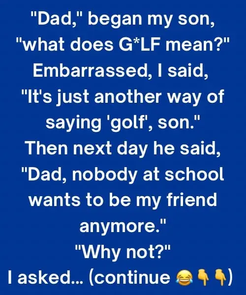 Embarrassed, I said, “It’s just another way of saying ‘golf’, son.”